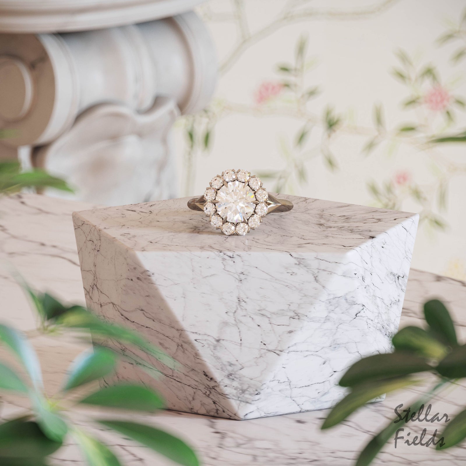$2,075.00 USDRadiant Halo Engagement Ring with Scalloped Micro Pave Band